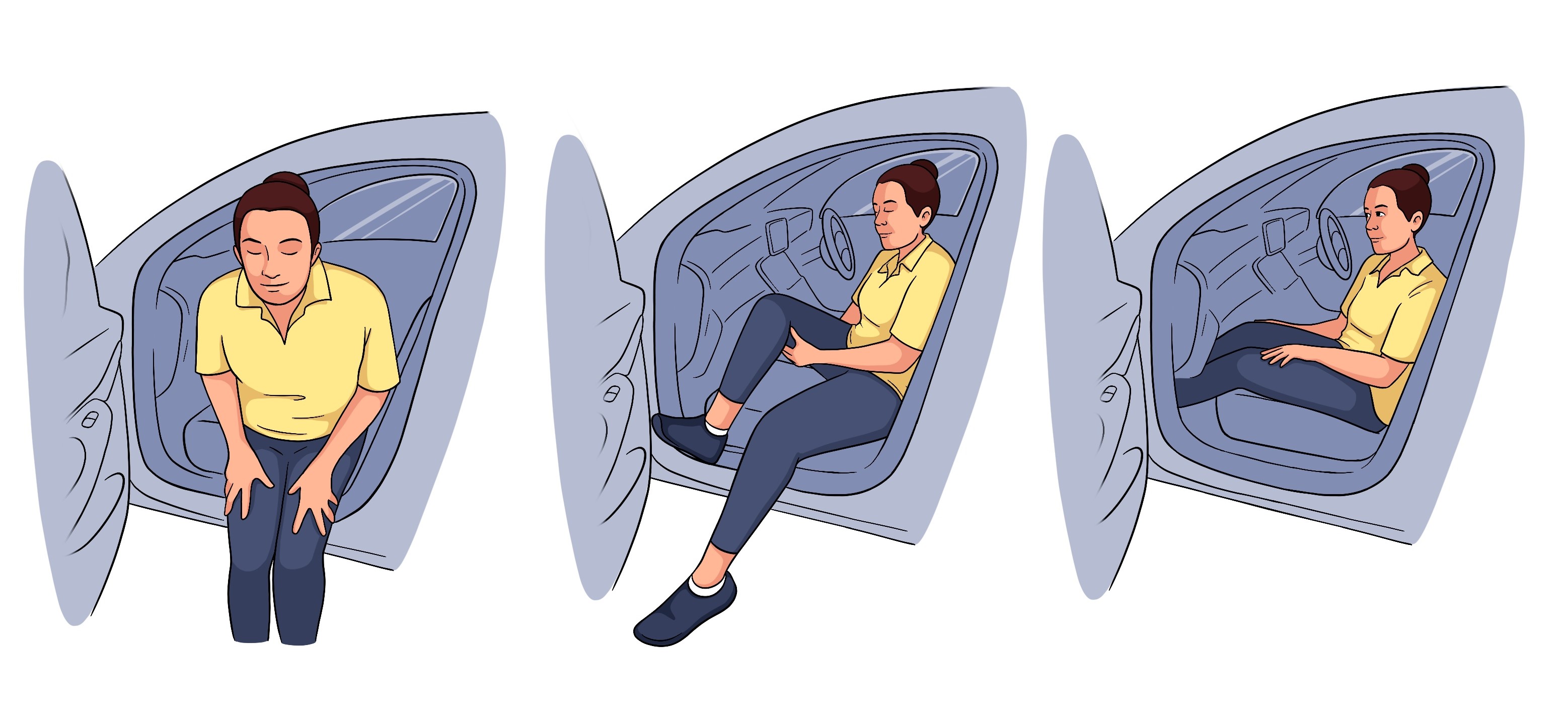 2º Passe um membro de cada vez para dentro do carro com a ajuda das mãos.