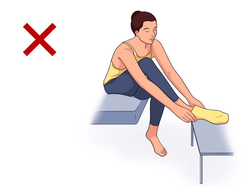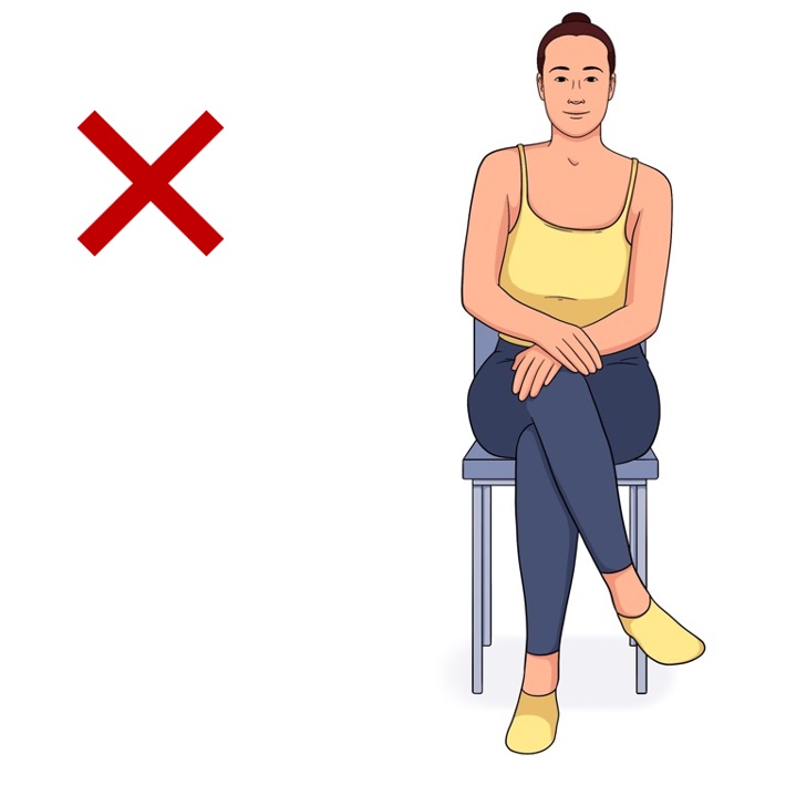 - Não se sente em cadeiras baixas (deve-se assegurar que a anca está sempre acima do nível dos joelhos).