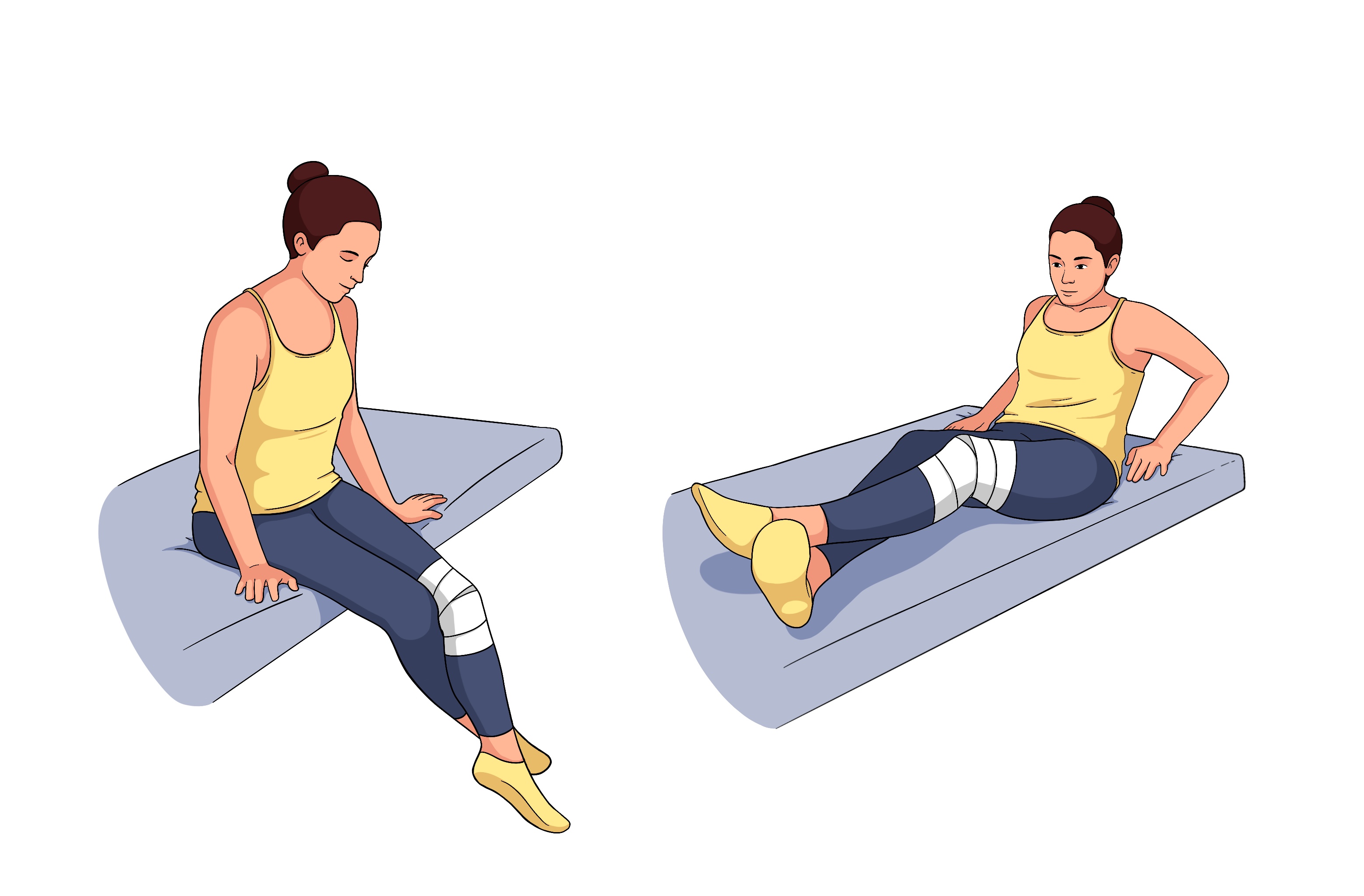 2) Utilize o “membro bom” para ajudar a levantar o membro operado, à medida que roda o seu tronco para se deitar.