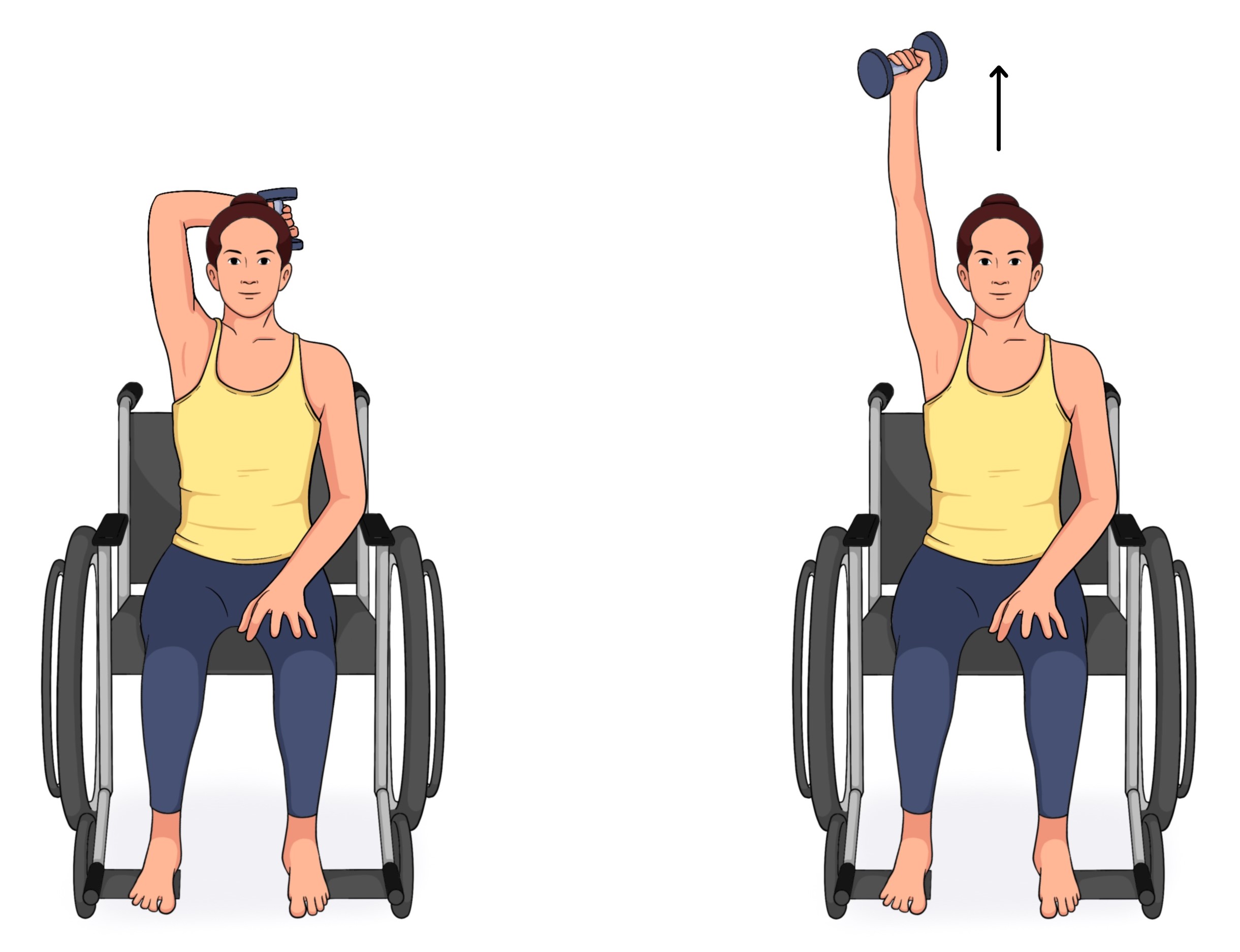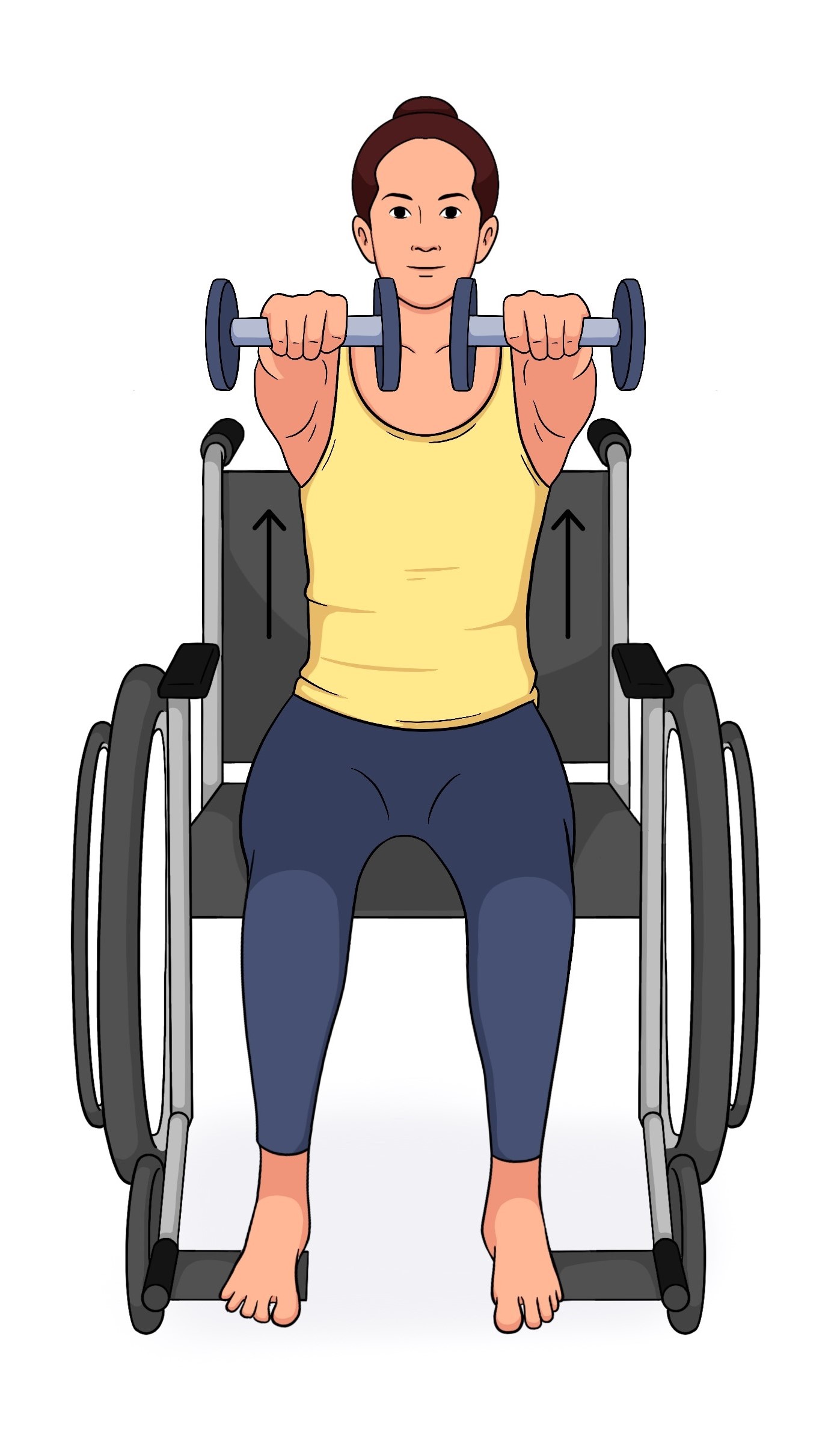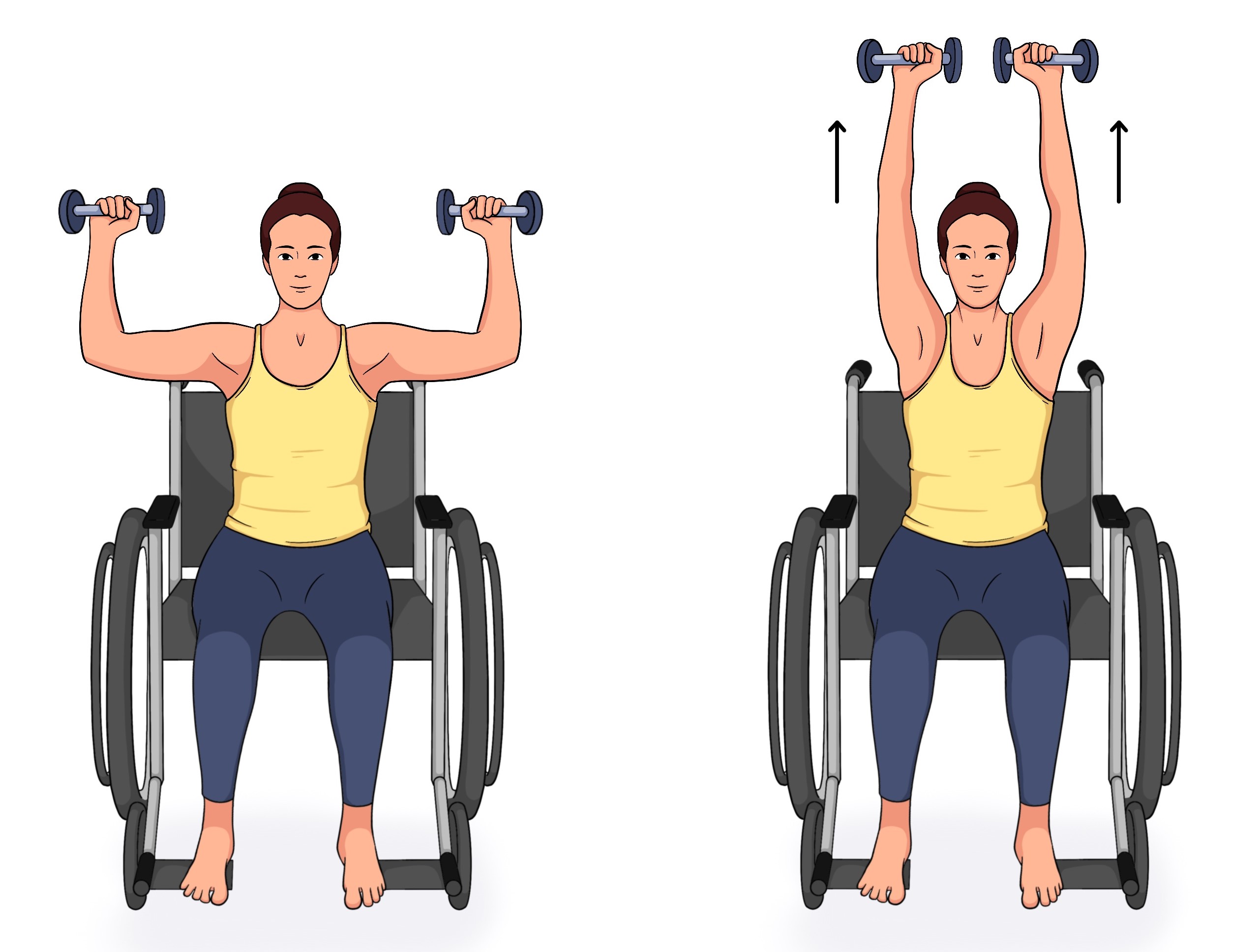 2) Empurre os pesos acima da cabeça, até aos braços ficarem estendidos;