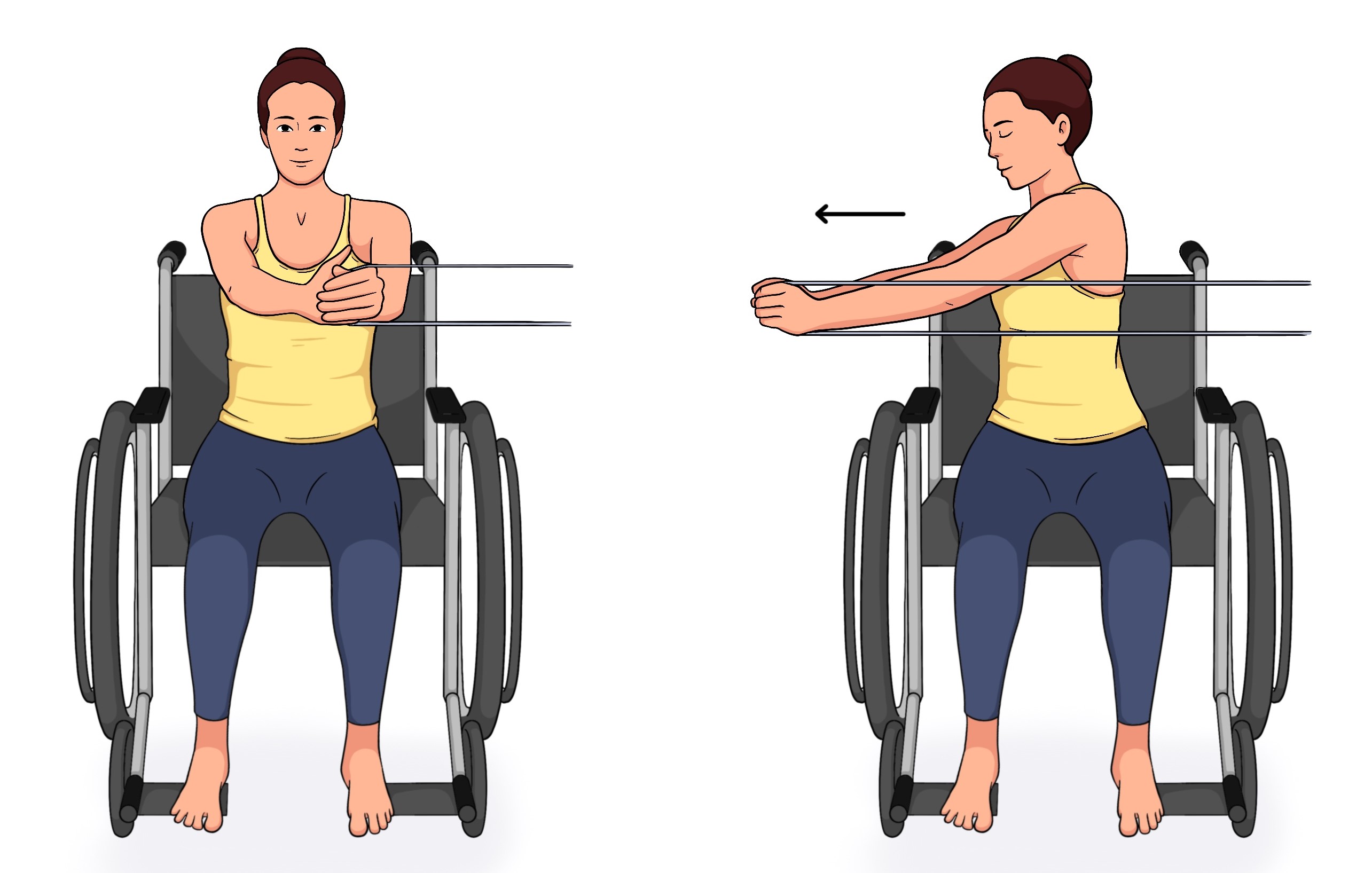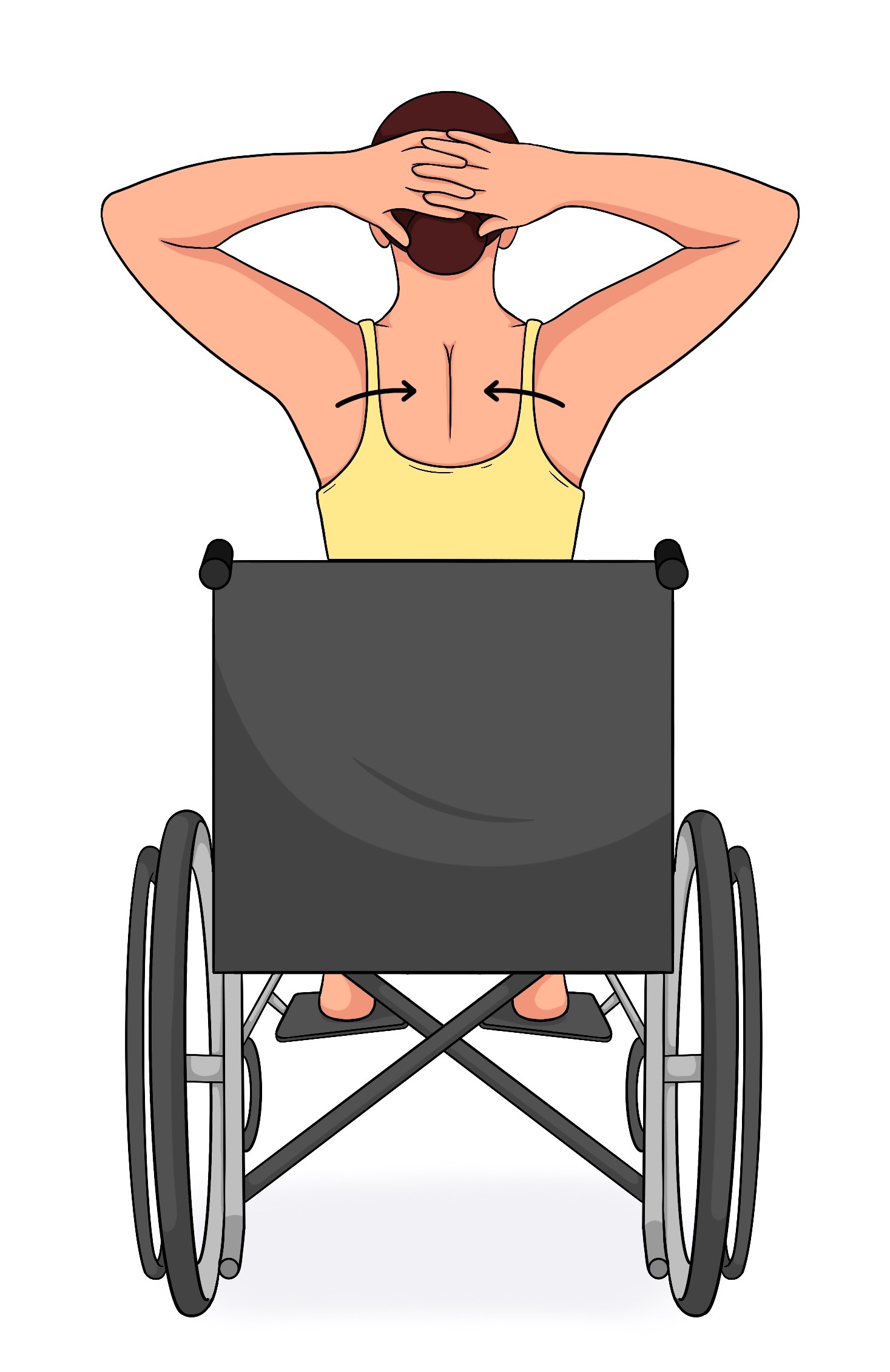 3) Puxe lentamente os cotovelos para trás, aproximando as omoplatas simultaneamente e mantenha a posição durante 2-5 segundos;