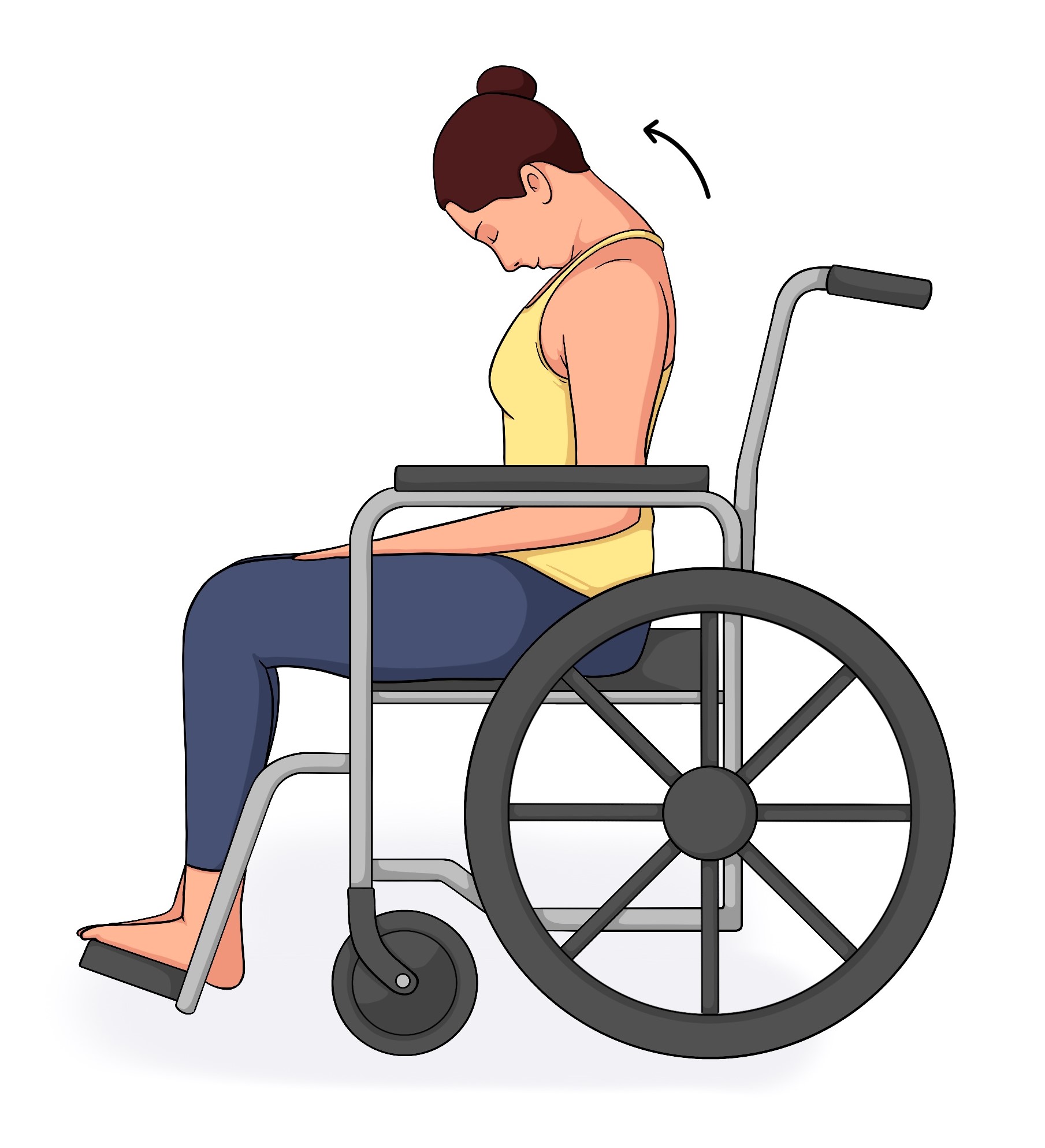 2) Baixe o seu queixo, até sentir um alongamento na região posterior do pescoço;