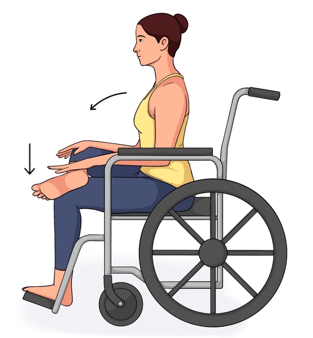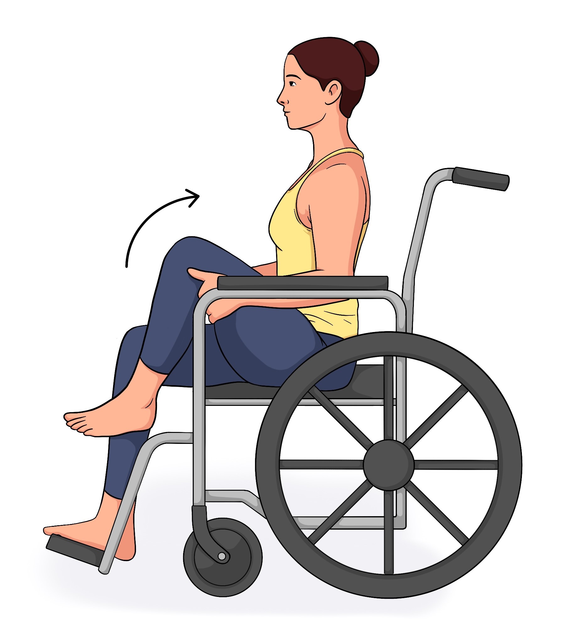 1) Sentado, com as costas rectas, dobre o joelho, levando-o em direção ao peito;
