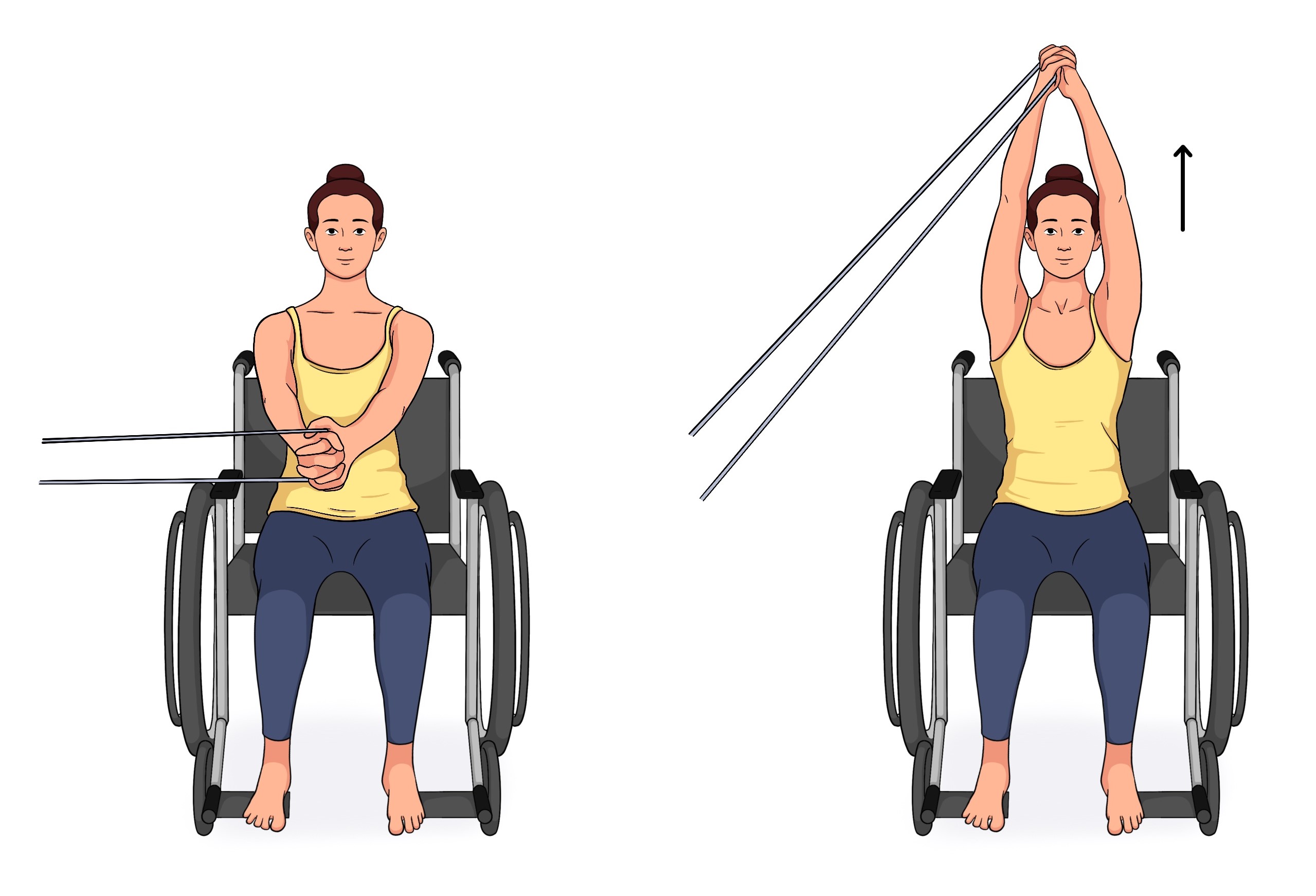 2) Realize um movimento para cima e para trás, até sentir um alongamento no tórax;