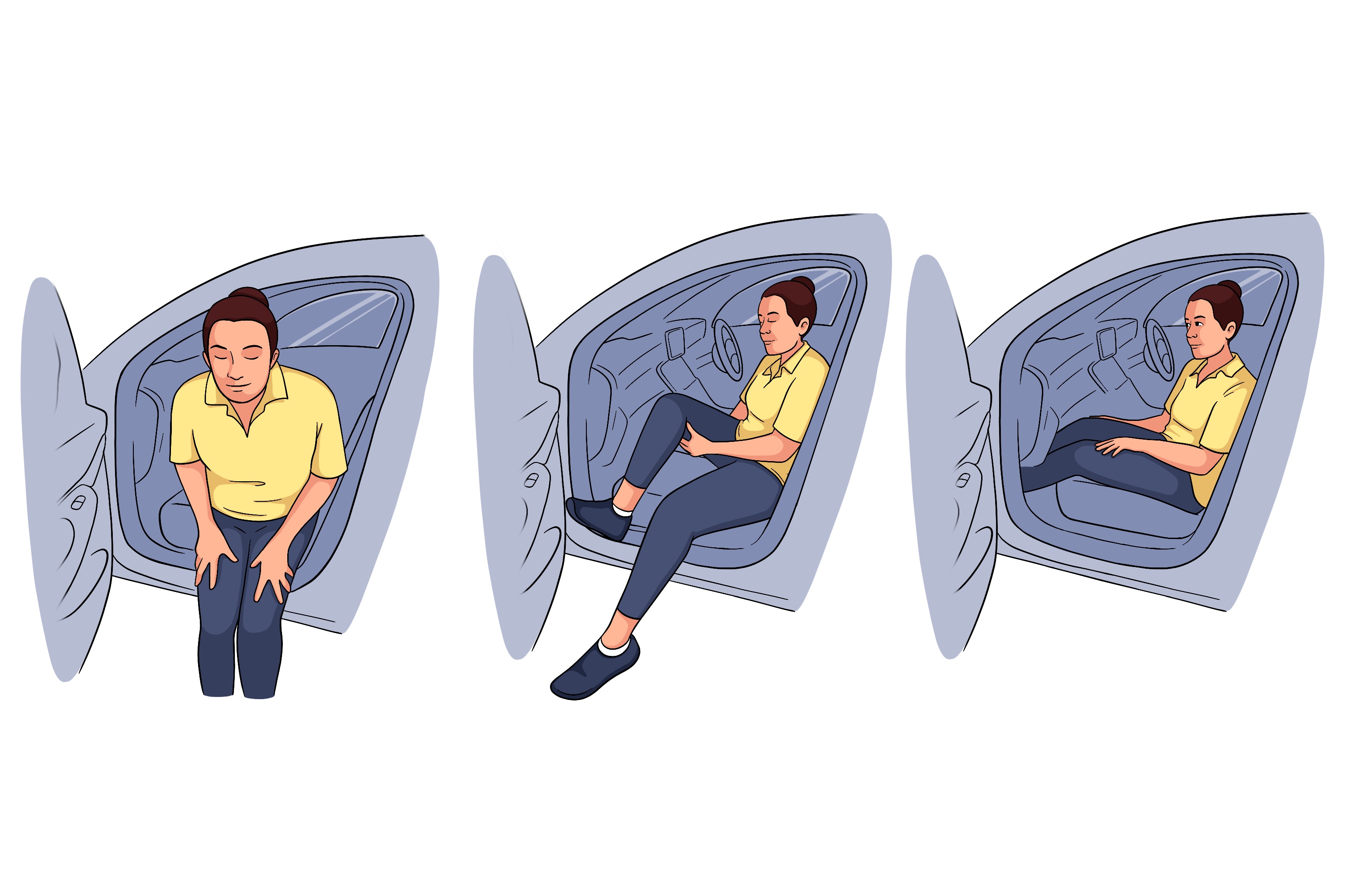 2º Passe um membro de cada vez para dentro do carro com a ajuda das mãos.