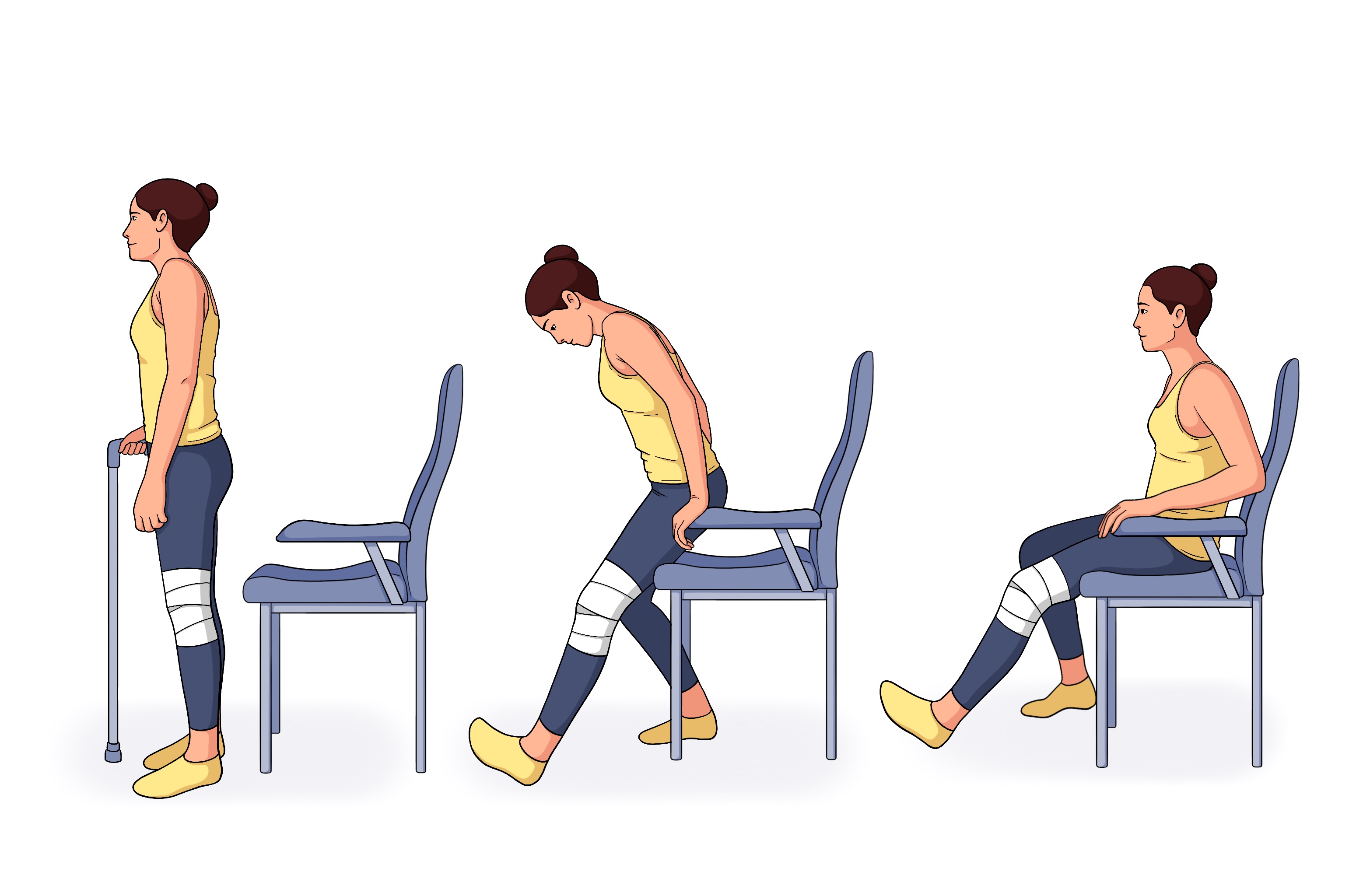 3) Baixe-se lentamente, até se sentar na cadeira.