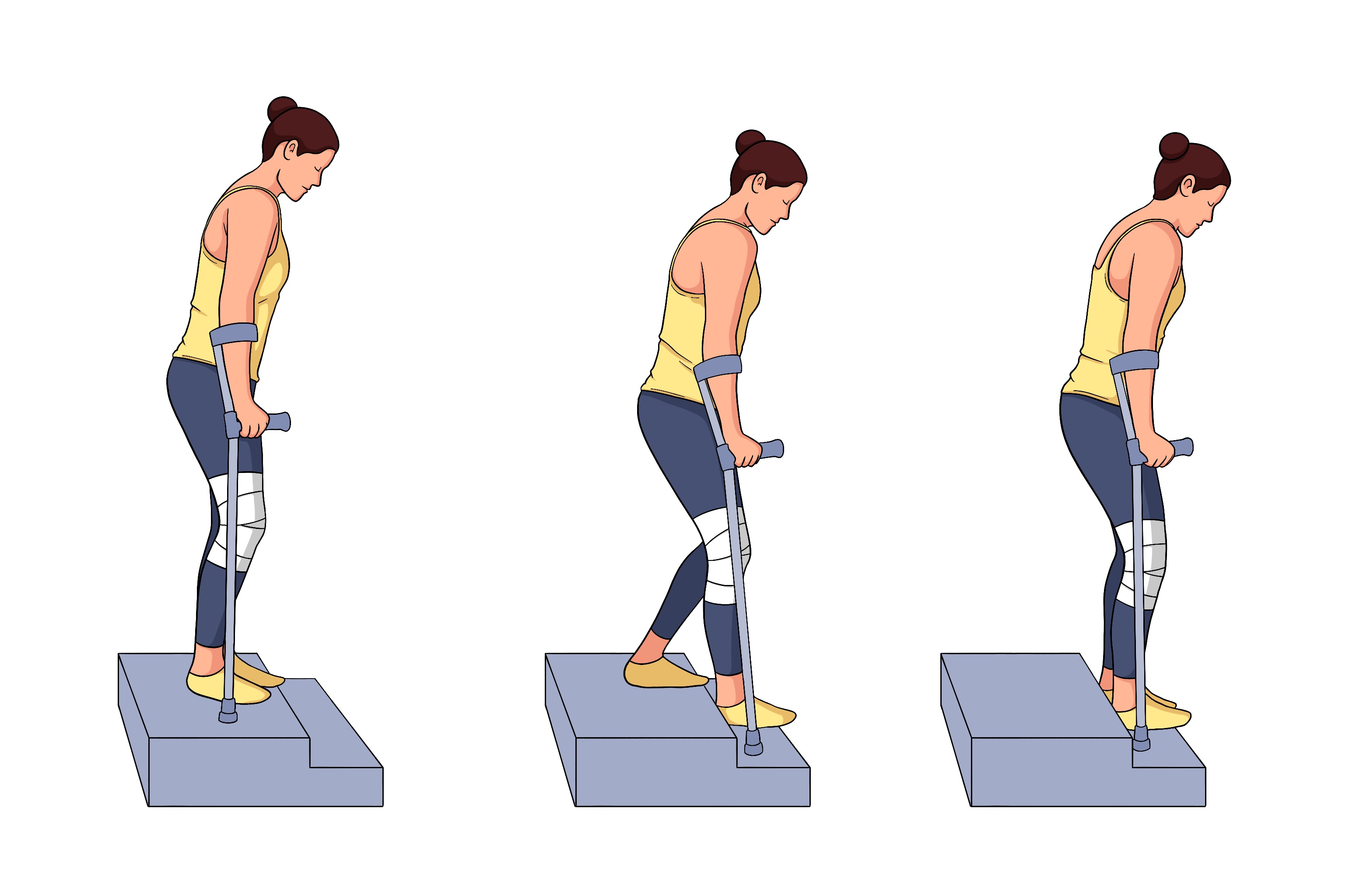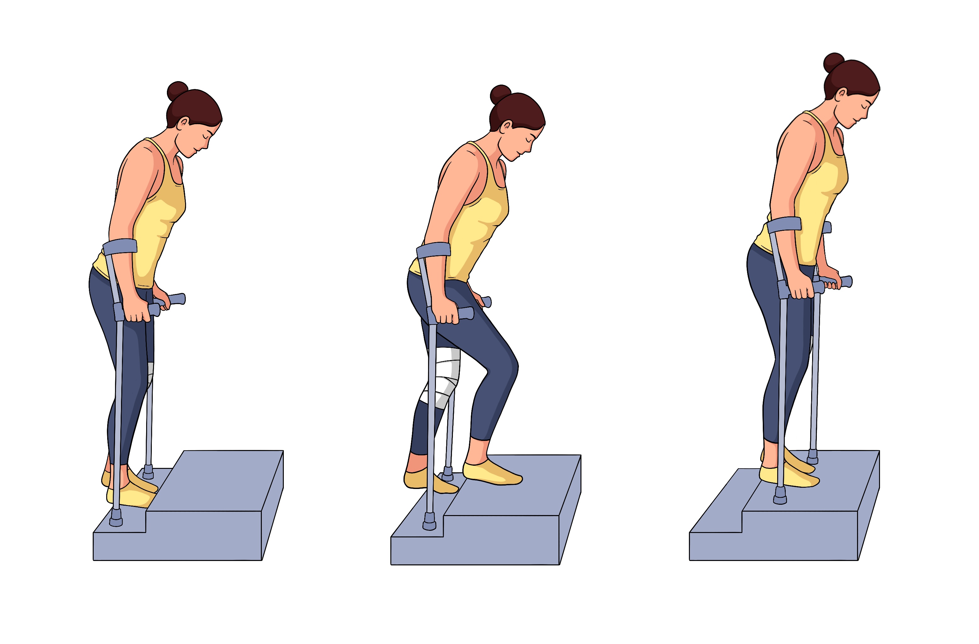 "Subir com a perna boa e descer com a perna operada."