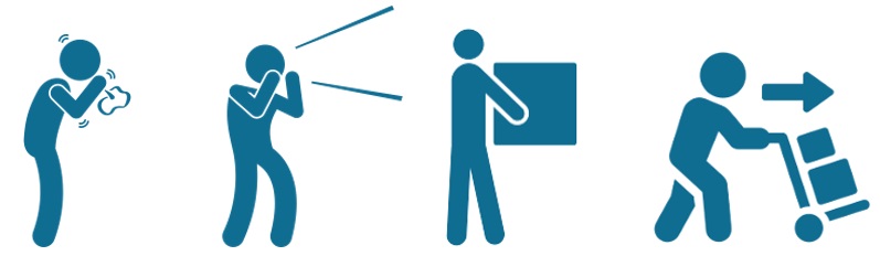 dobrar-se para a frente, colocar-se de cócoras, ir buscar objetos a prateleiras altas, gritar…
